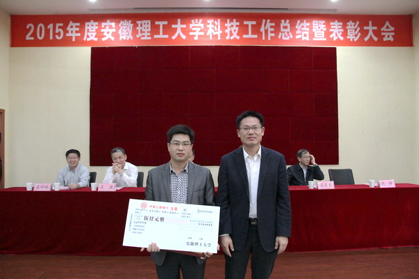 副校长叶醒狮宣读了学校对2015年度科技贡献集体奖和个人奖的表彰决定。校长郭永存为2015年度科技贡献奖个人奖黄友锐、王建国两位同志颁奖。校党委副书记王洪、副校长王其东、校纪委书记周峰分别为2015年度校科技贡献集体奖一等奖能源与安全学院、二等奖地球与环境学院、三等奖理学院颁奖。